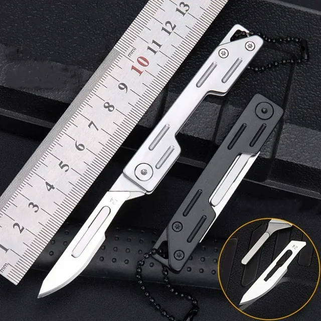 Máquinas de aço inoxidável dobrável bisturi faca dobrável médica edc faca de bolso de desembalagem ao ar livre com 10 peças de lâminas substituíveis