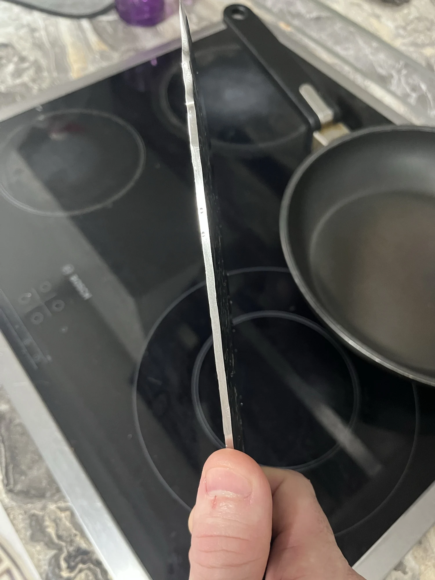 The knife is famous, made with high quality, I can't say anything about balanced-this is my first knife, when it will still be Serbian then will be compared with what. Very spicy, and comfortable, cut them meat, bread is a pleasure. Accidentally cut himself, just caught on the blade with his finger.