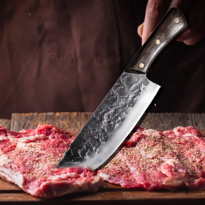 Faca de cozinha forjada artesanal de 7,6 polegadas, açougueiro, corte de carne, faca de chef chinês, aço inoxidável 5cr15