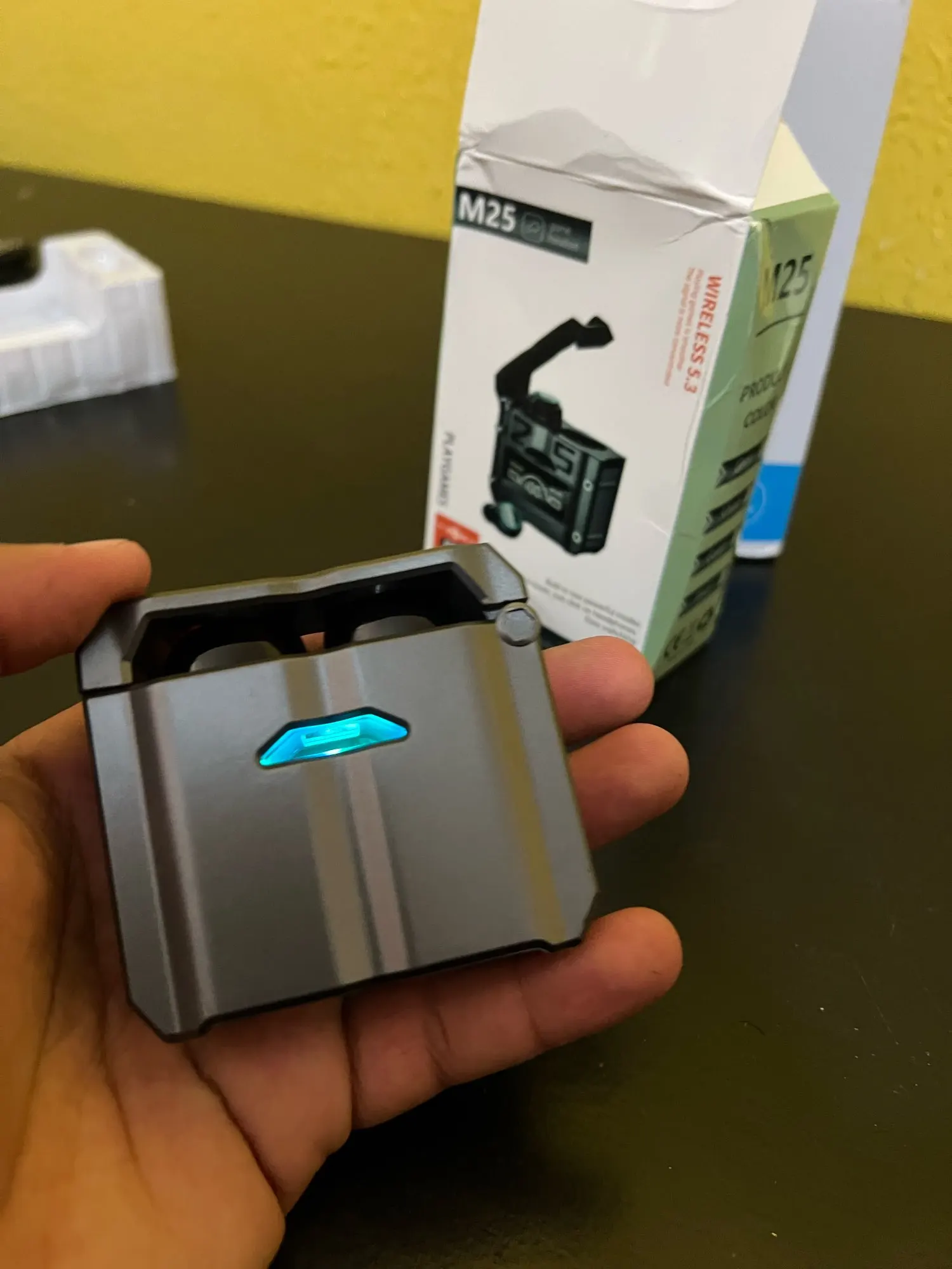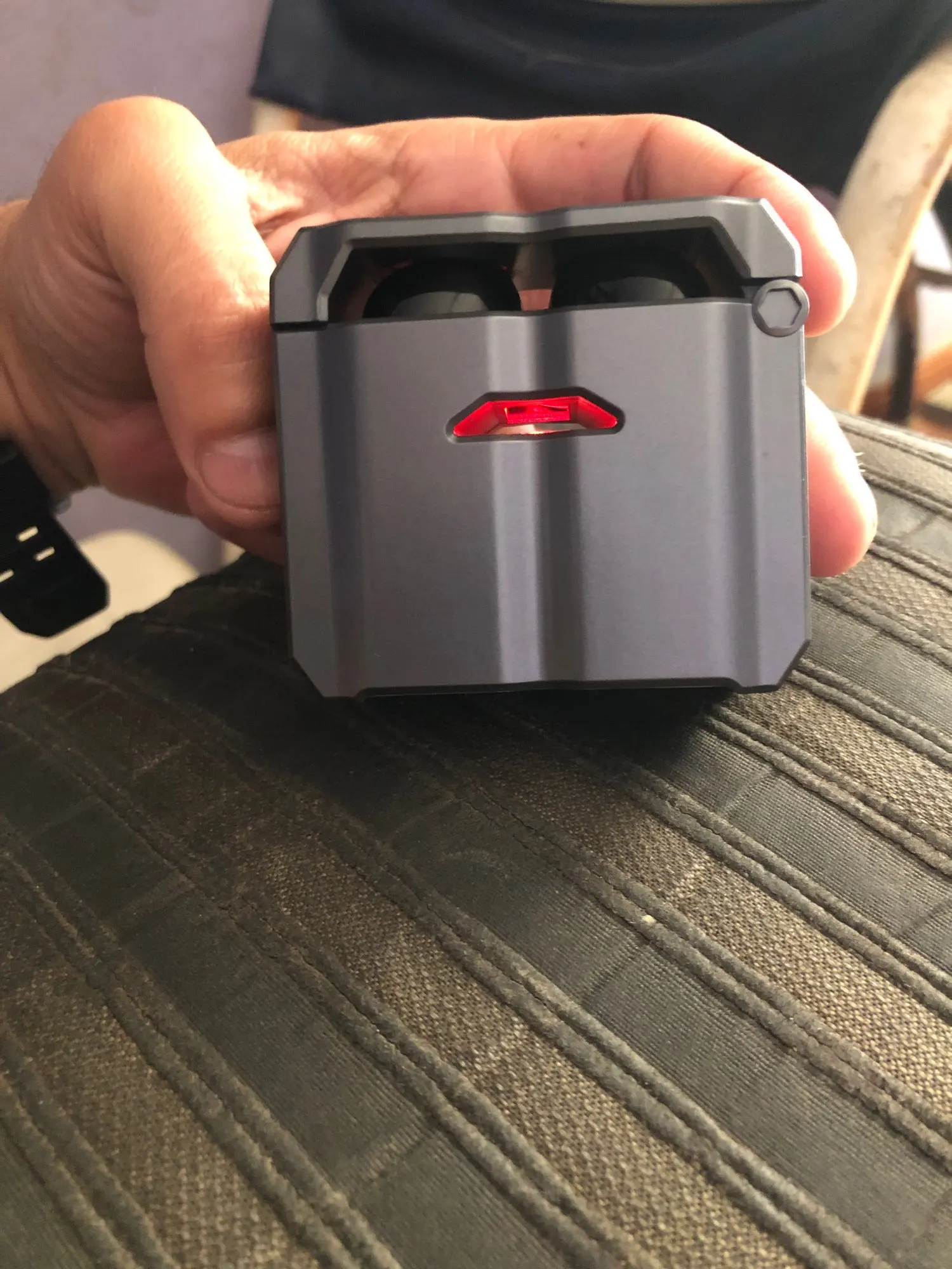 peguei esse fone por causa da caixa que pode usa como carregador extra.