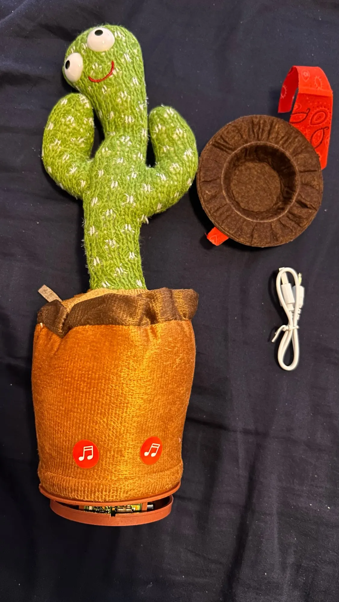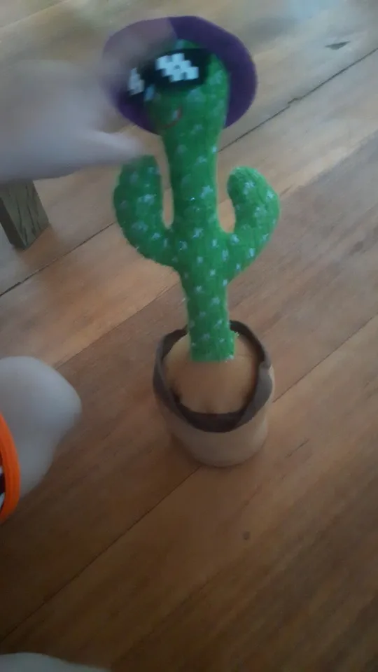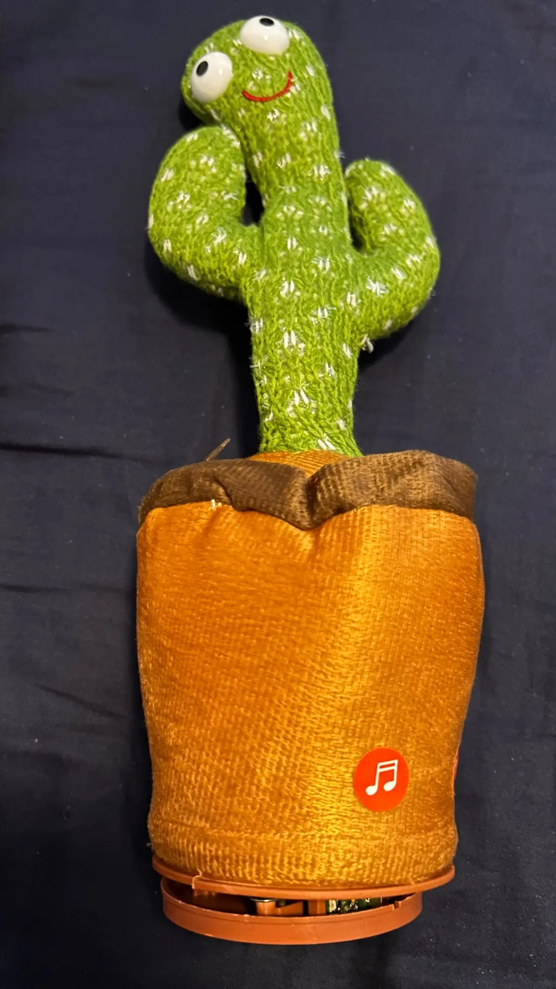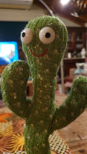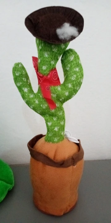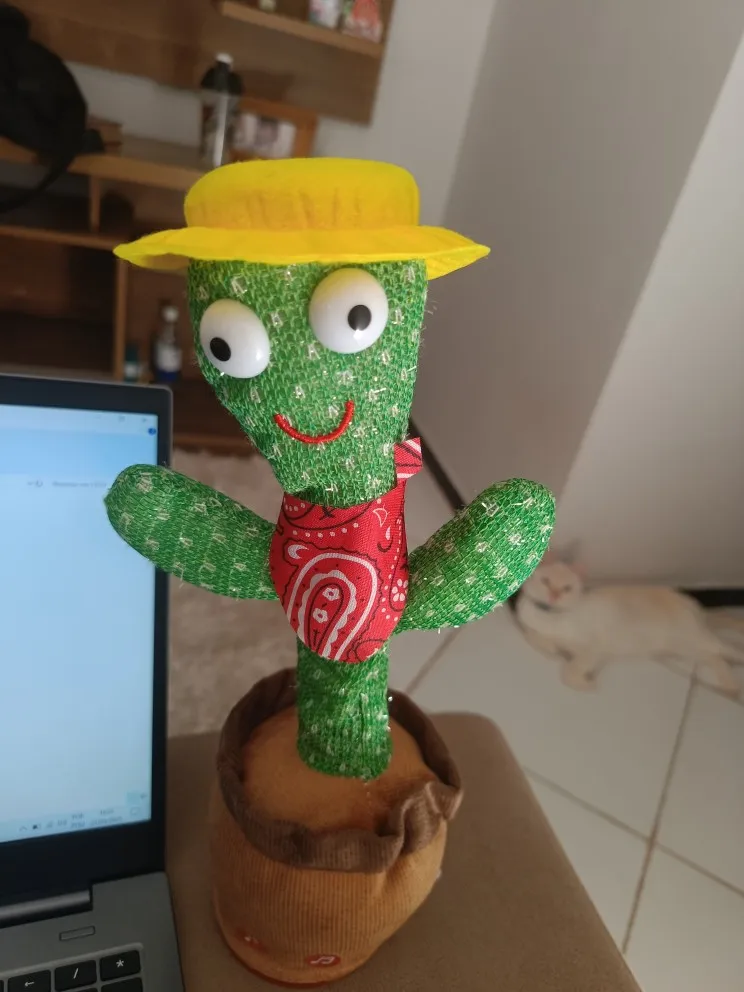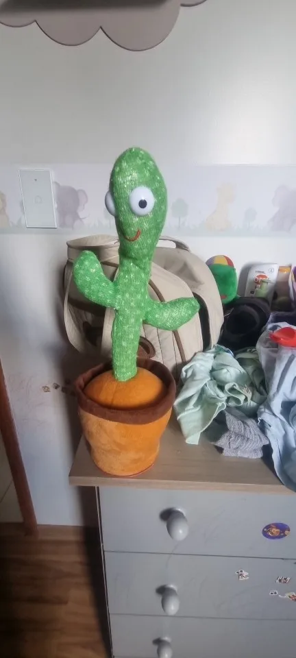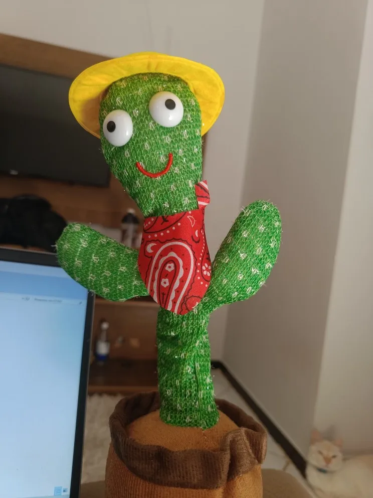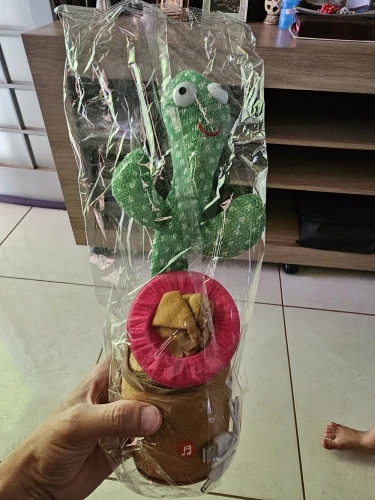 O brinquedo de cacto pode dançar, cantar, mexer, virar, e trazer muita diversão