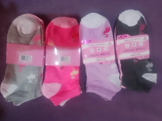 12 Pares de Meias Cano Curto Sortidas divididas em 4 Kits de 3 Pares Cada