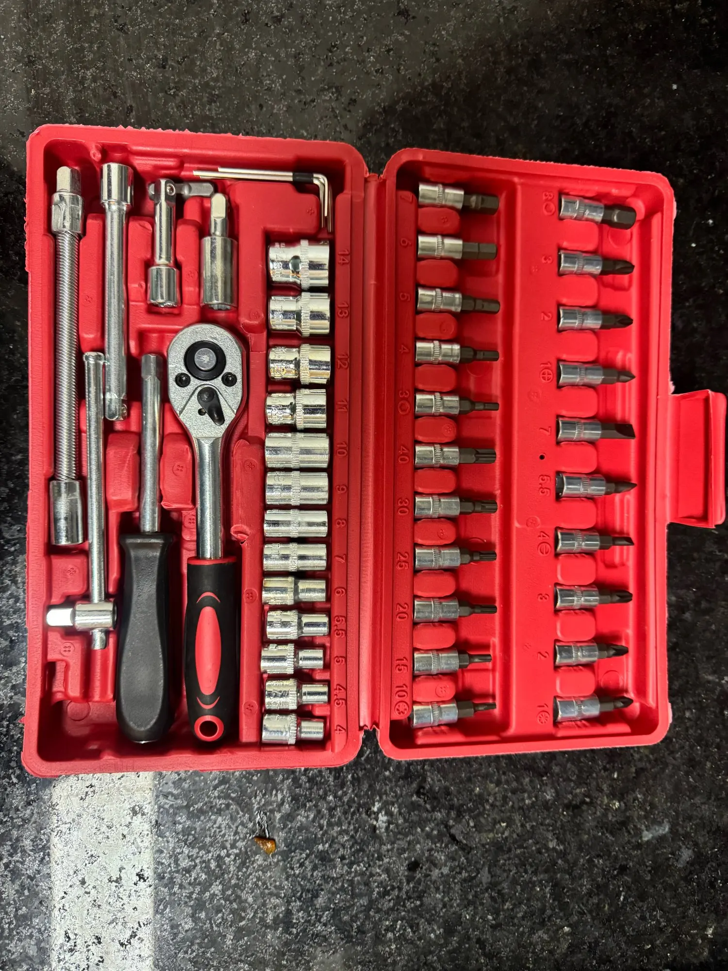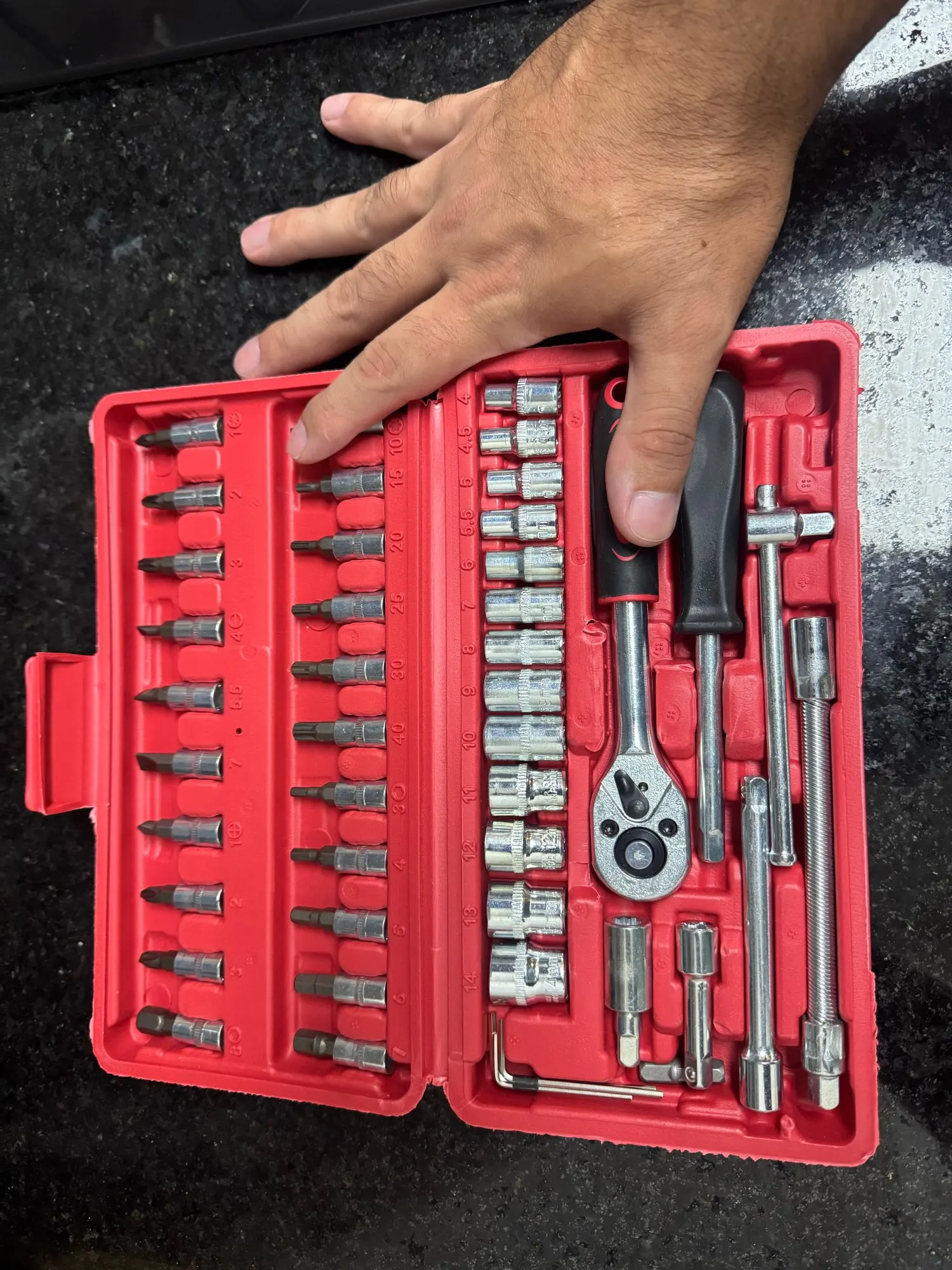 Jogo de soquetes Bits 1/4 em aço cromo vanádio é composto por 46 peças, produzidas com aço cromo vanádio, proporcionando resistência e durabilidade. Indicado para aperto e desaperto de porcas e parafusos, entre outros. As peças são acondicionadas em uma maleta fabricada em plástico, propiciando organização e facilidade de transporte.