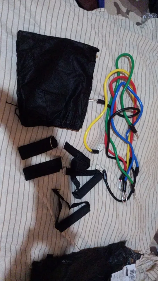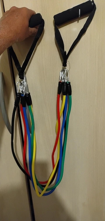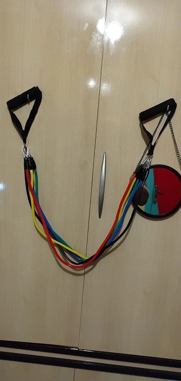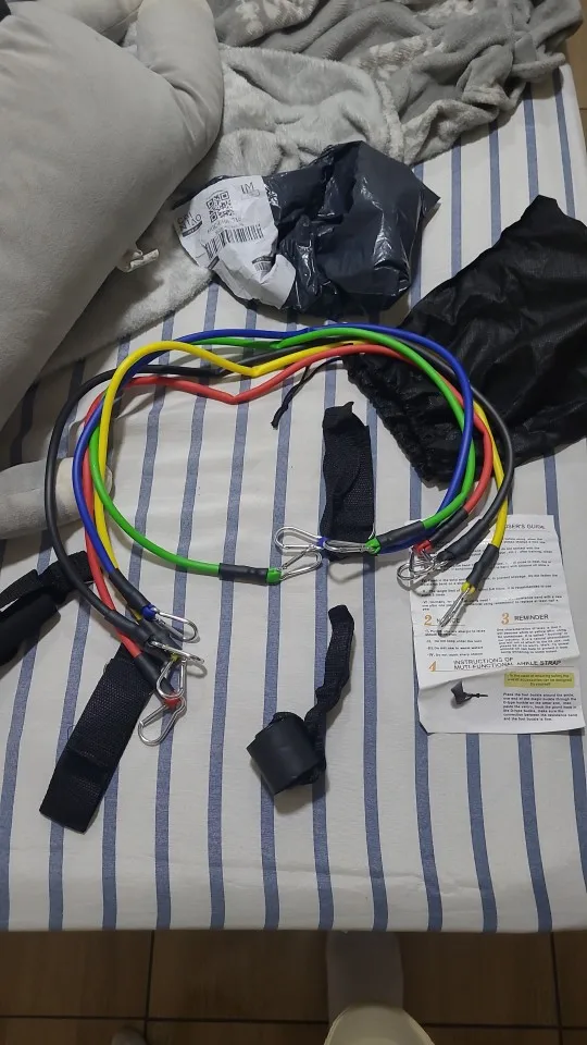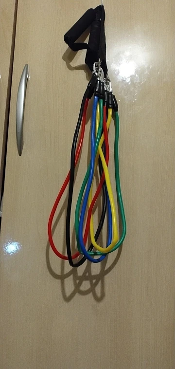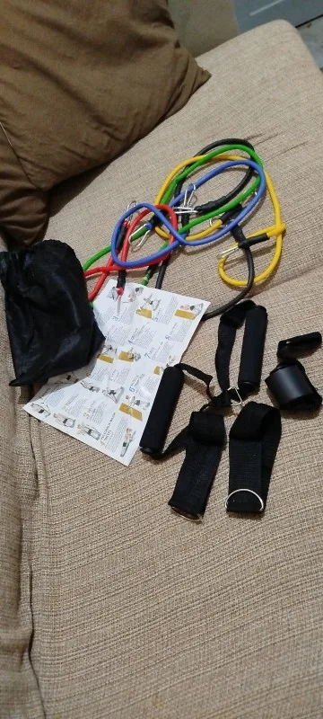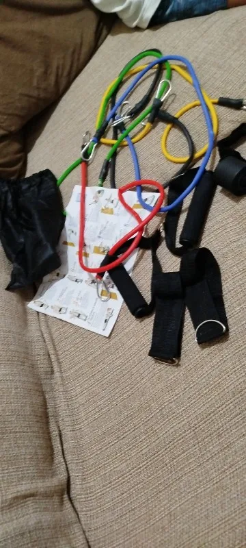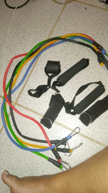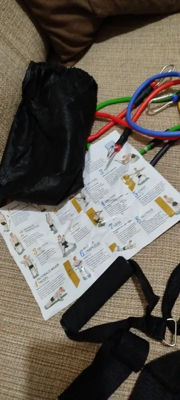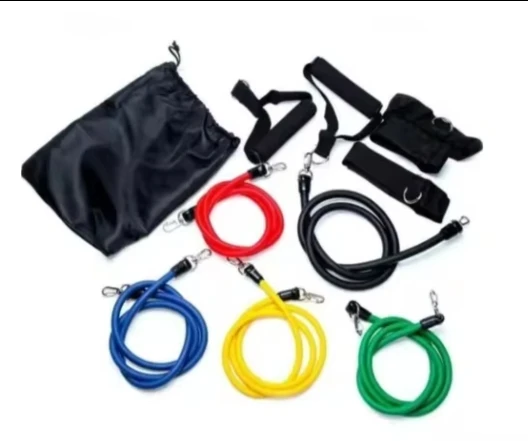 Especificações do Kit Tubing Elástico 11 Itens Treinamento Funcional Pilates. Elásticos feitos de borracha profissional látex de alta qualidade e resistência, cada elástico tem 1,20m de comprimento, facilmente você pode criar mais de 30 diferentes níveis de resistência, anexando 1, 2, 3, 4 ou 5 elásticos de uma vez, perfeito para Musculação, Yoga e Pilates etc.