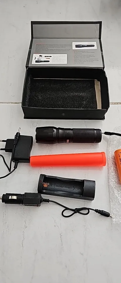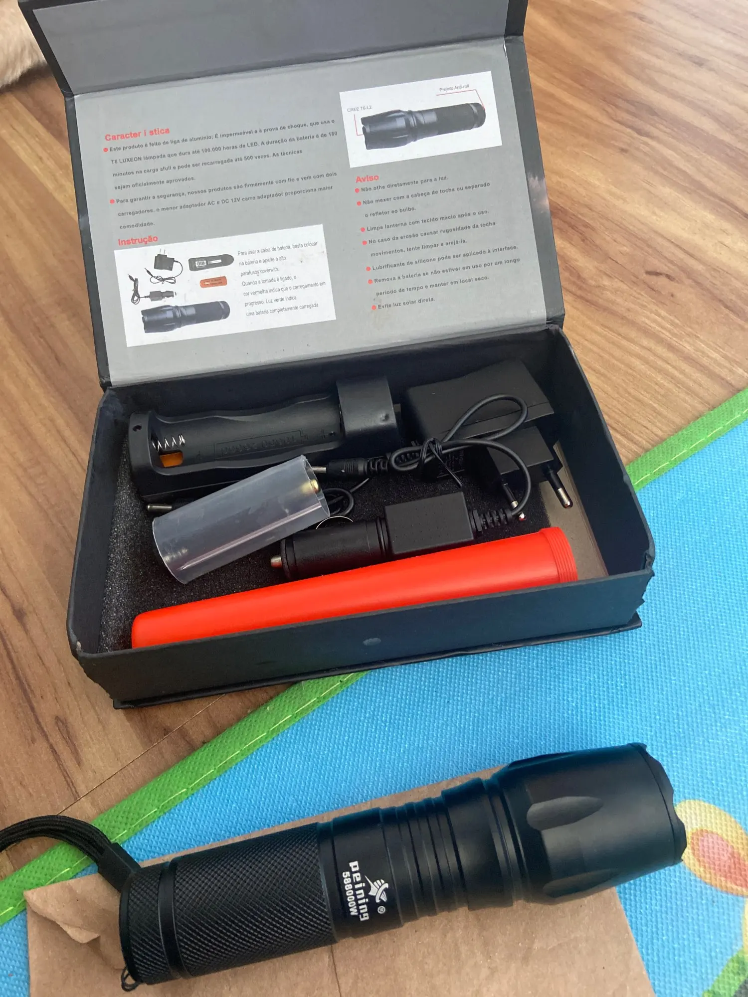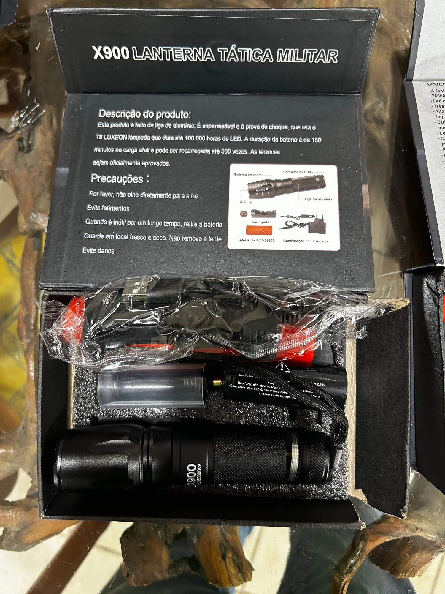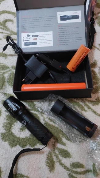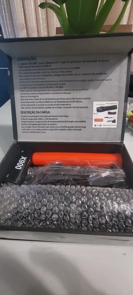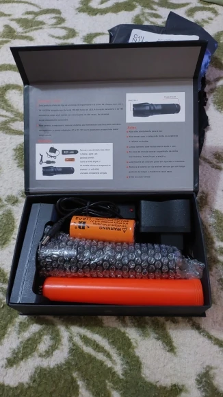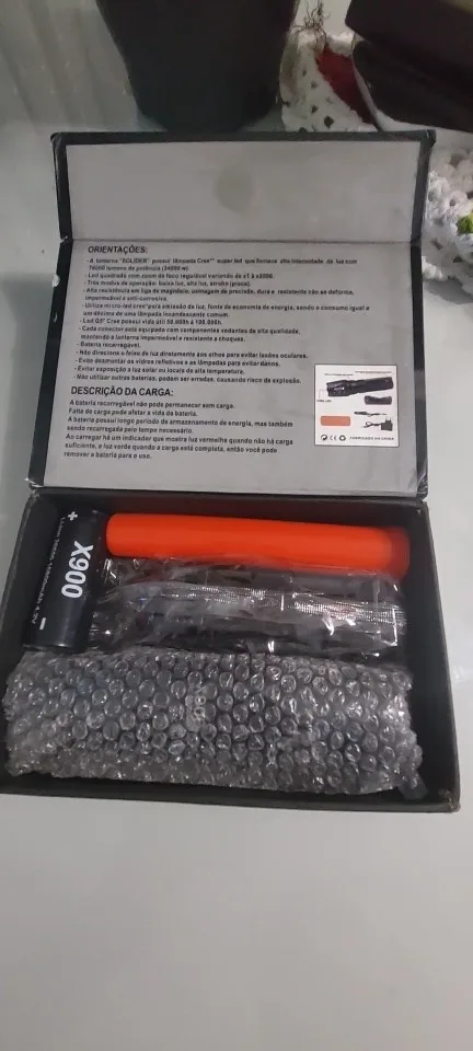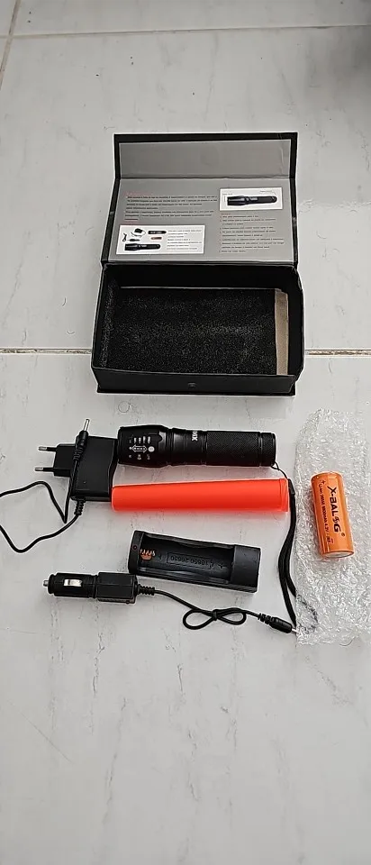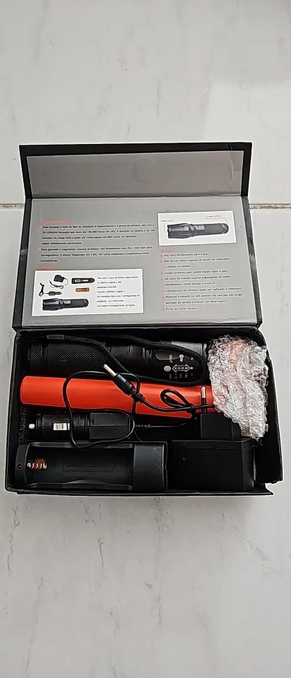 Este produto é feito de alumínio, é impermeavel e a prova de choque. Usa o Q5 LUXEON lâmpada que dura até 100.000 horas de LED. A duração da bateria é de 180 minutos na carga full e pode ser recarregada até 500 vezes. As técnicas são oficialmente aprovadas
