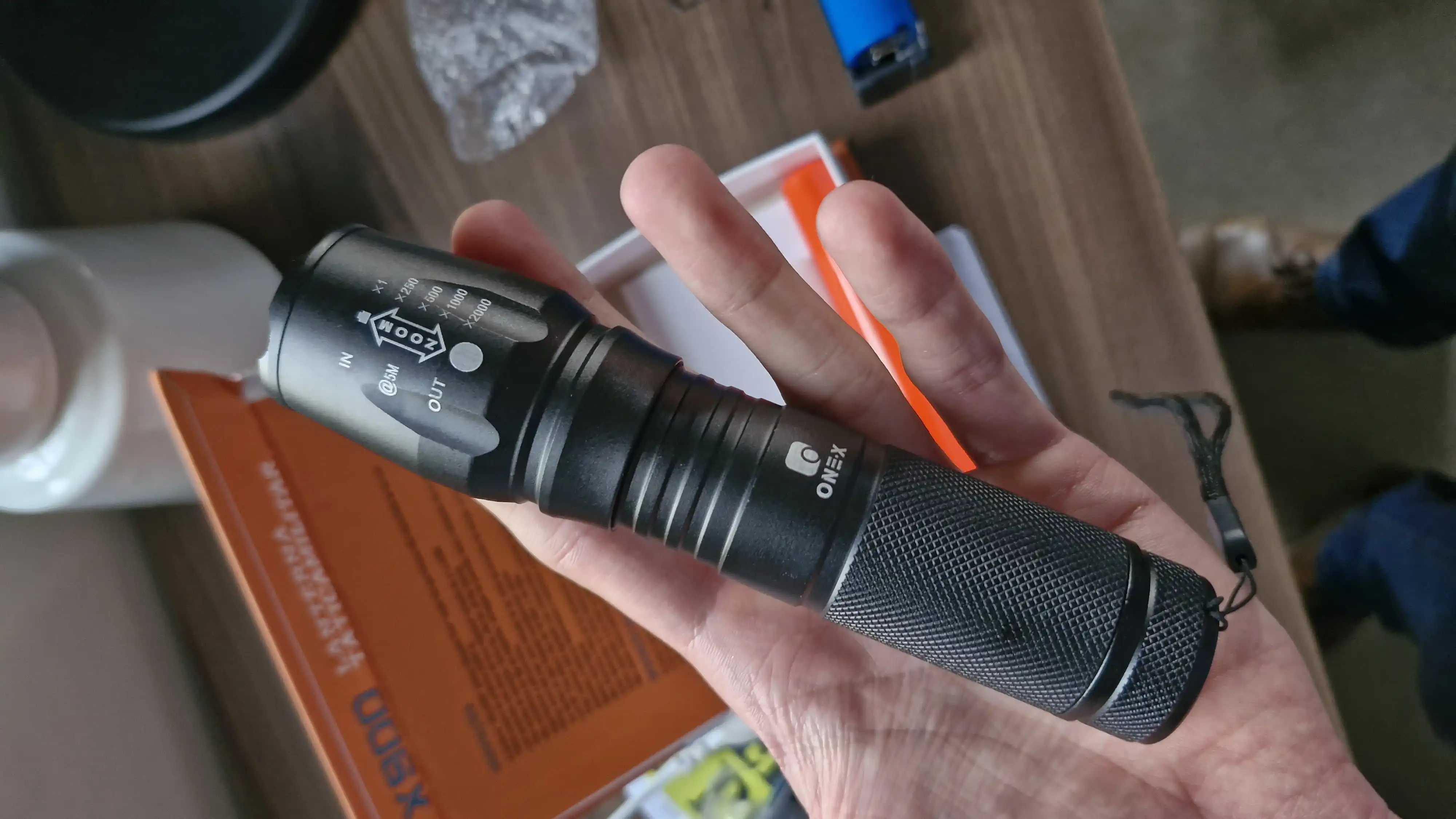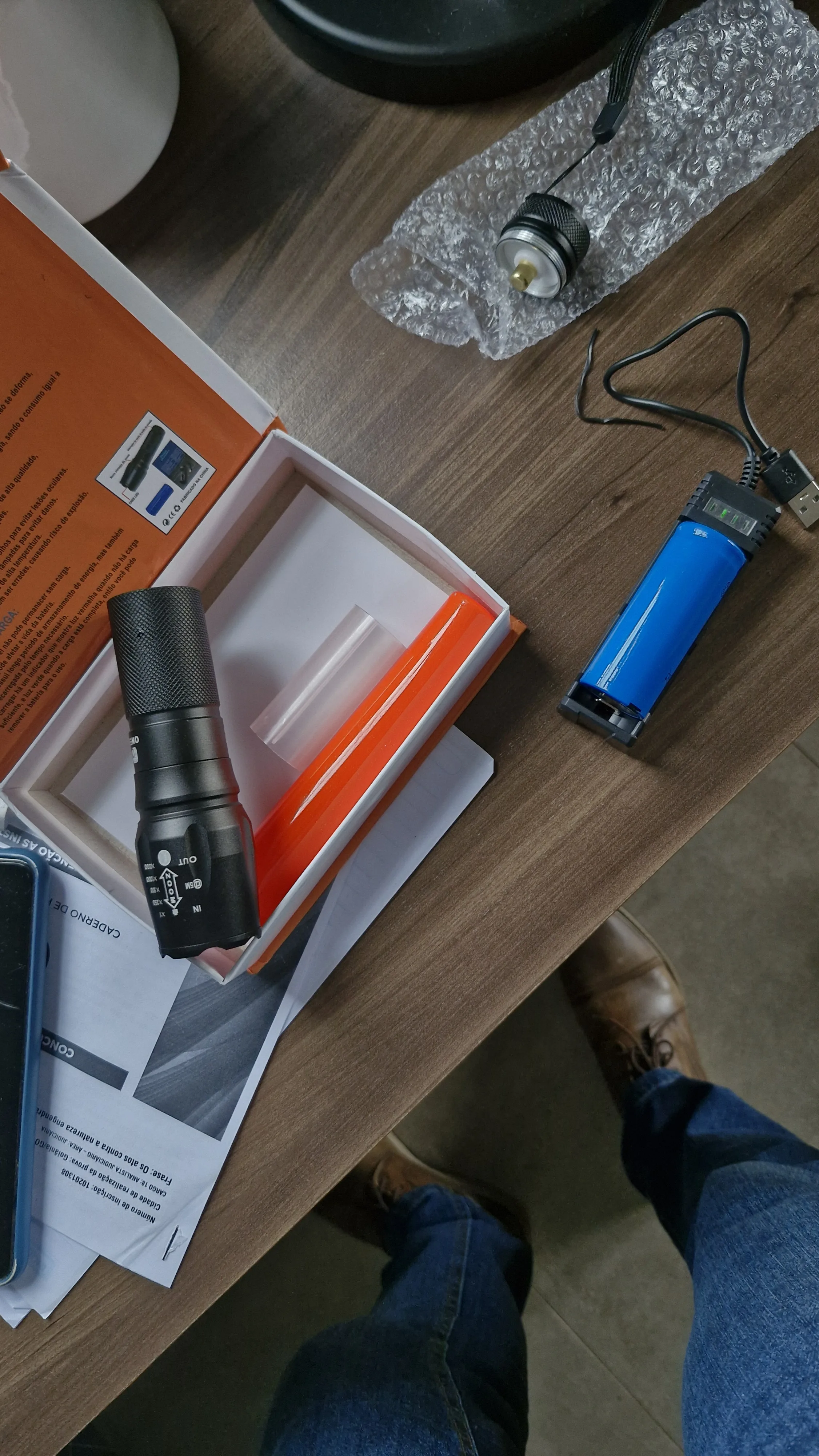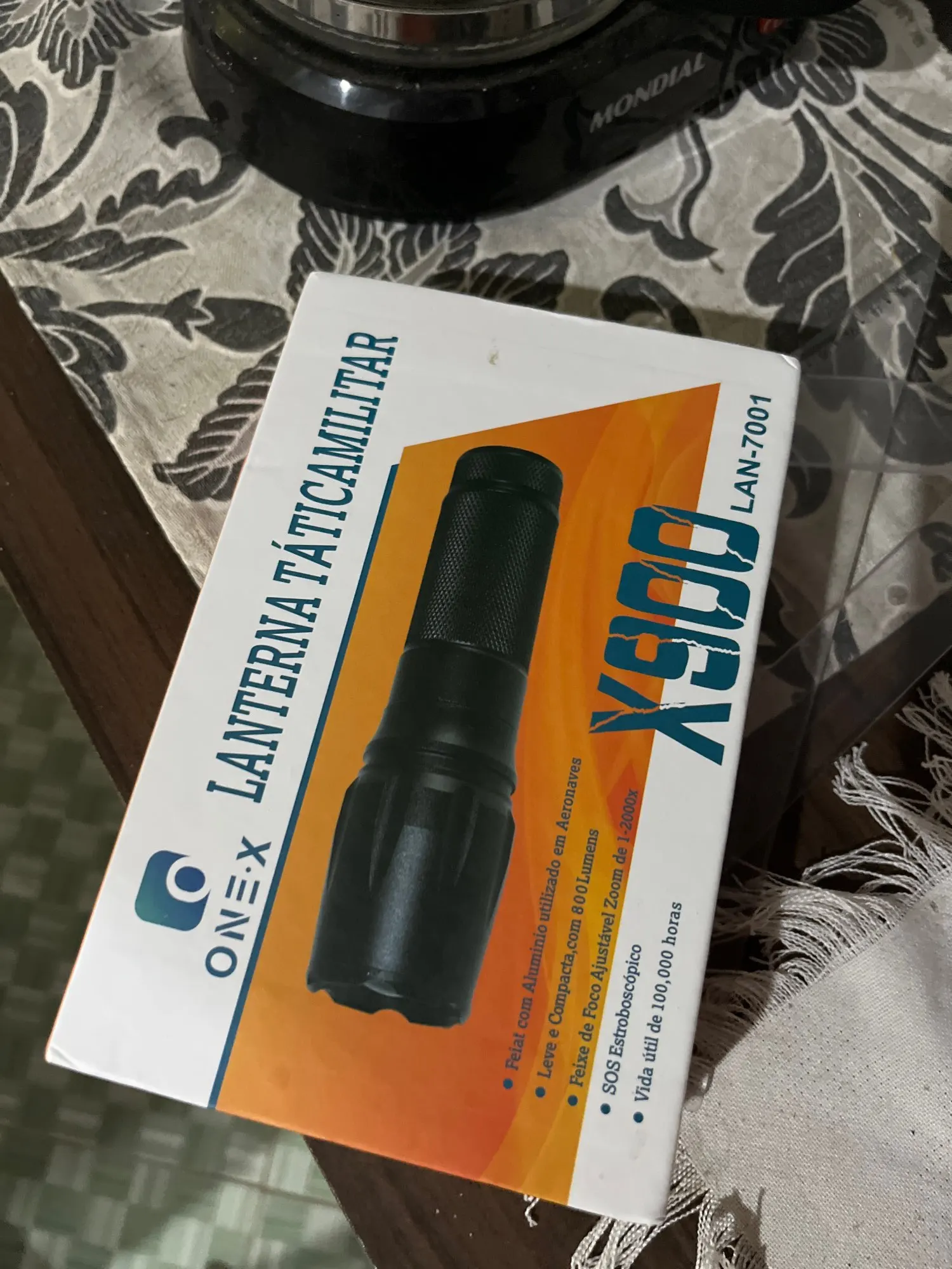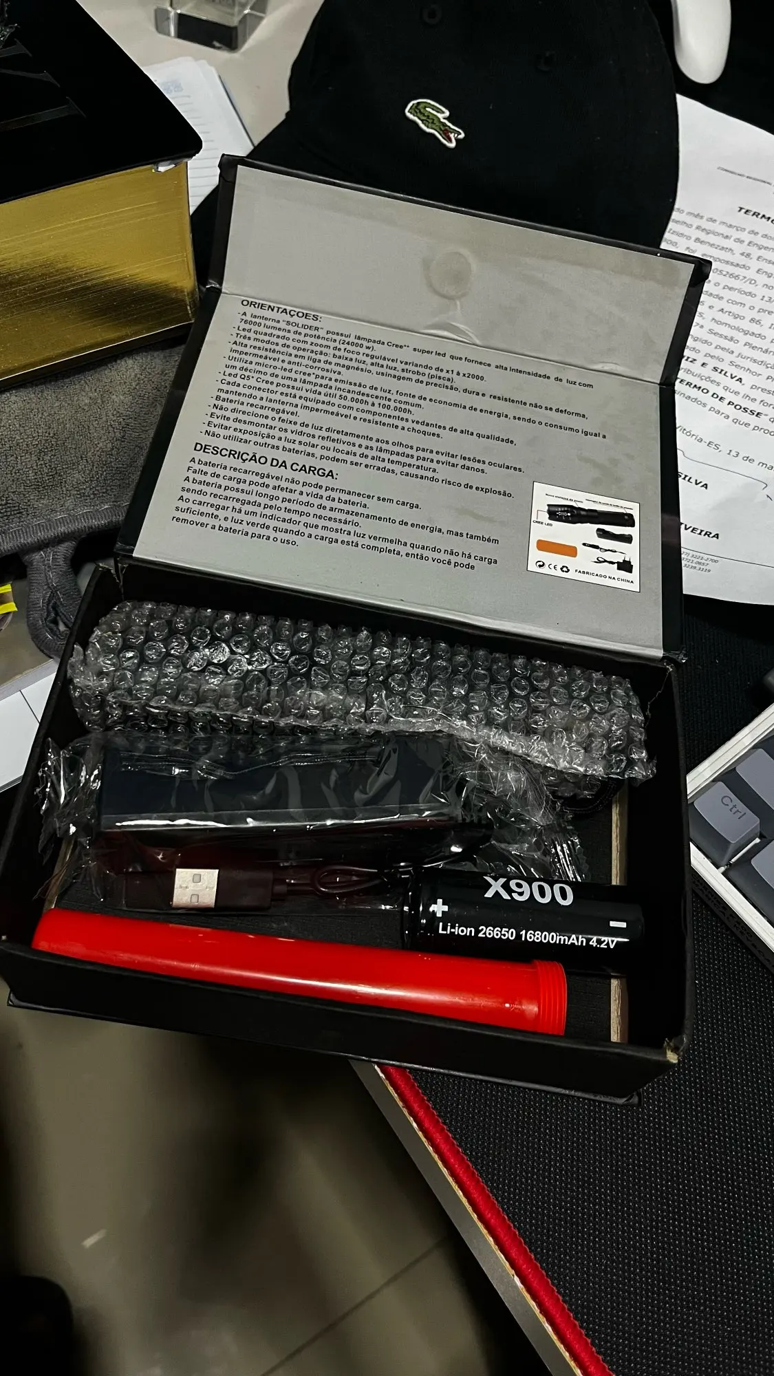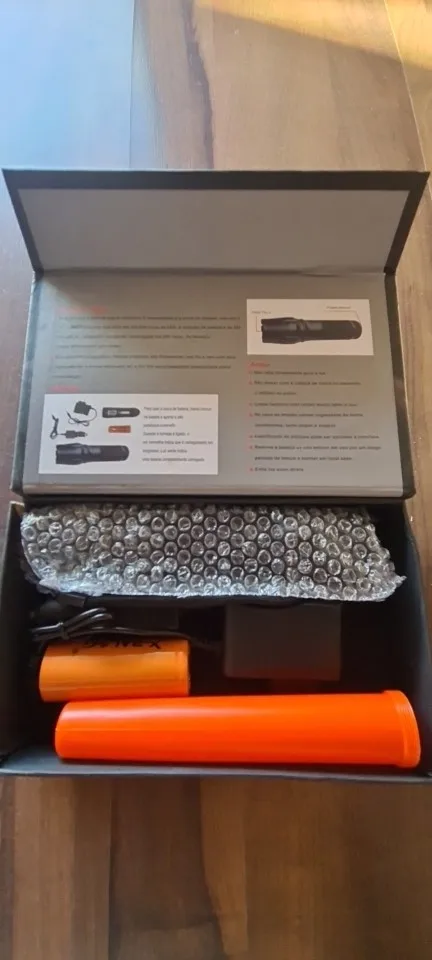 Este produto é feito de alumínio, é impermeavel e a prova de choque. Usa o Q5 LUXEON lâmpada que dura até 100.000 horas de LED. A duração da bateria é de 180 minutos na carga full e pode ser recarregada até 500 vezes. As técnicas são oficialmente aprovadas