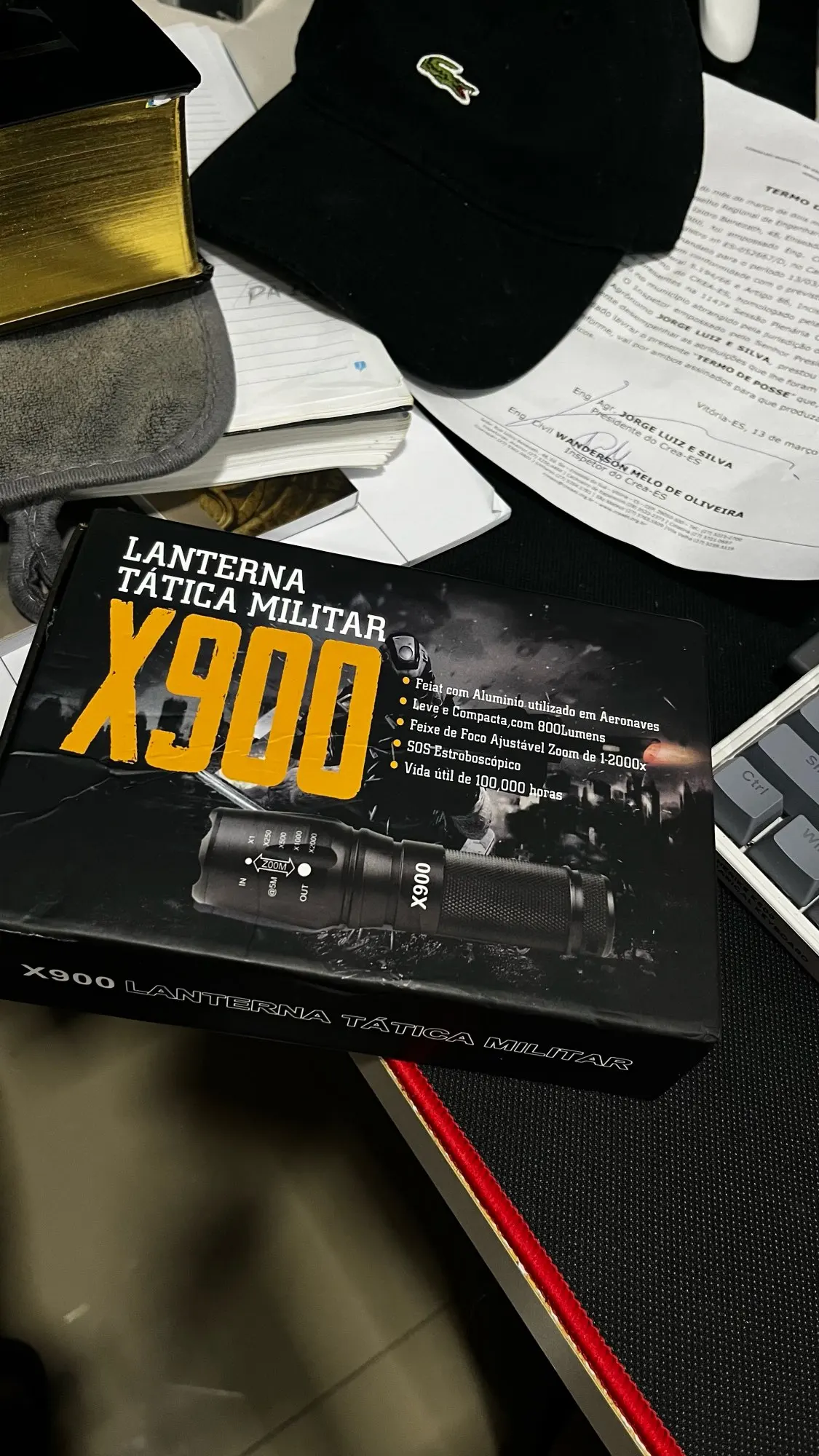 A lanterna possui 3 grandes funções Luminosas, que são: Alta intensidade, baixa intensidade e strobo.