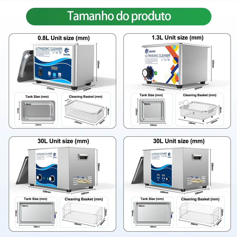 Limpador ultrassônico de mesa 0,8L 1.3L 30L 110V/220V 40KHz 60W/900W Lavadora ultrassônica Brasil Entrega rápida local