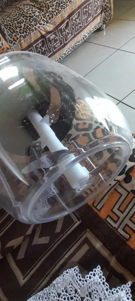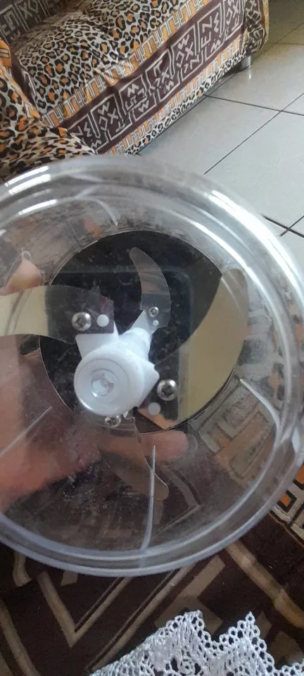 Possui trava de segurança e antiderrapante na parte inferior para não escorregar na superfície. Proporciona cortar e triturar uma variedade de alimentos tais como legumes, frutas e verduras. Acionamento por corda retrátil.