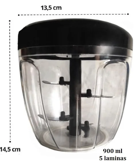 Contém: Mini Processador Manual De Alimentos Grande 5 Lâminas 900ml