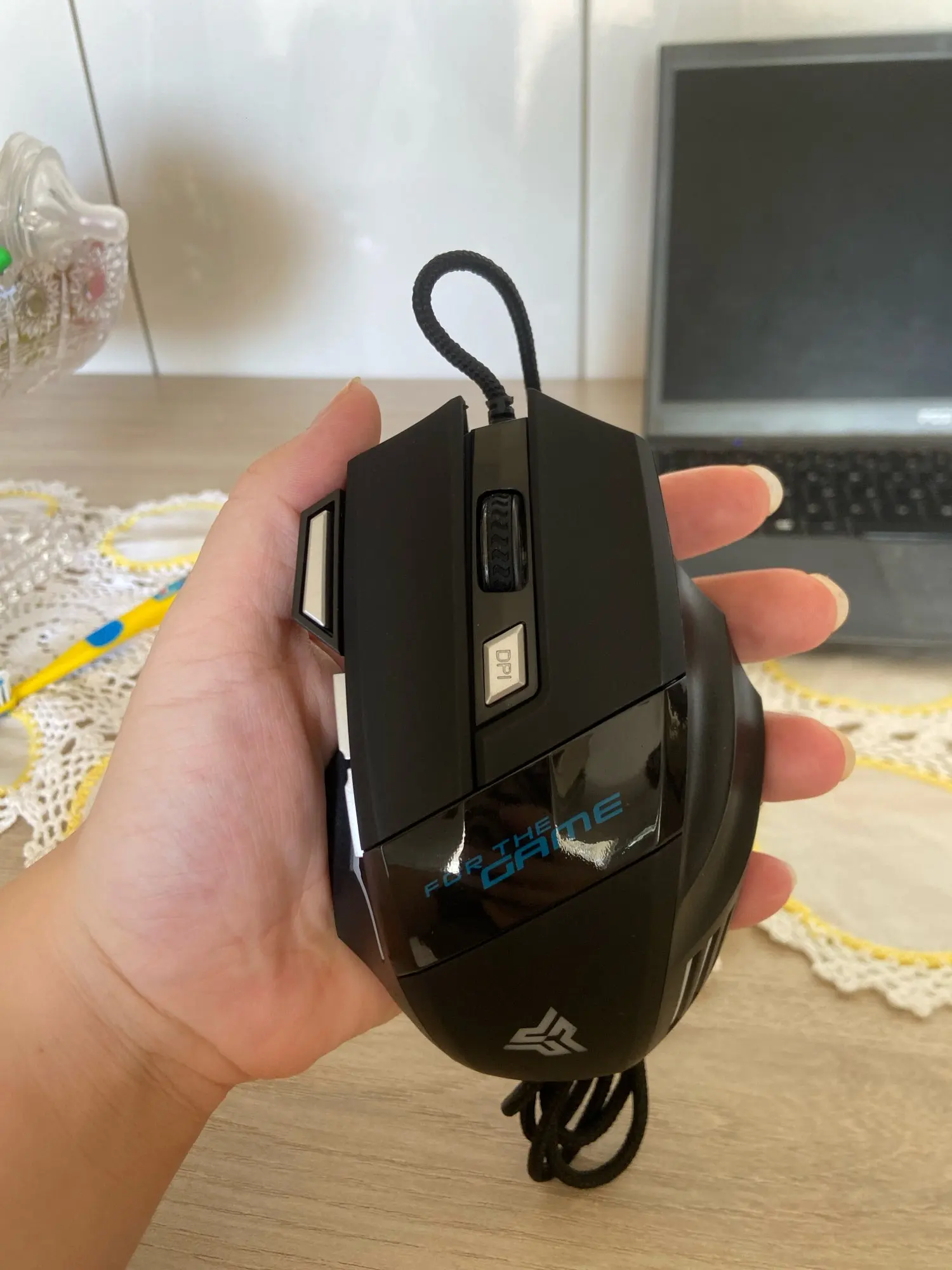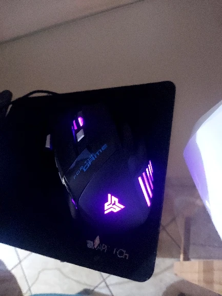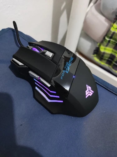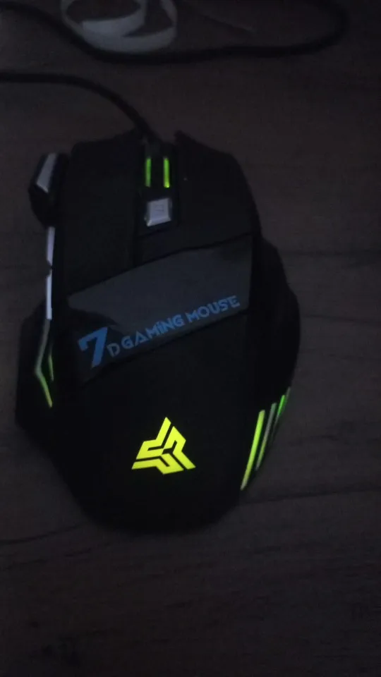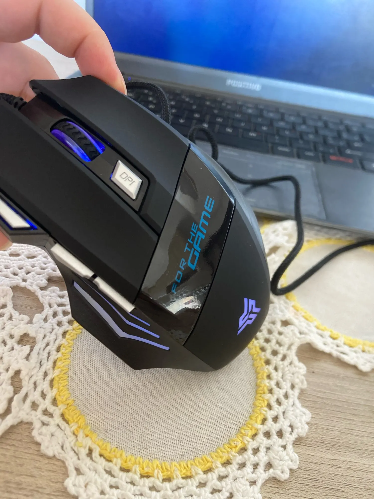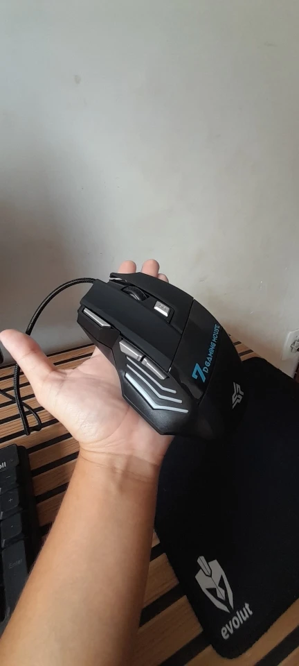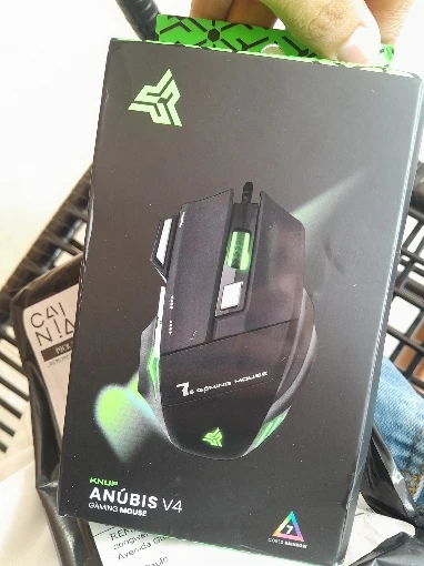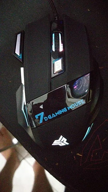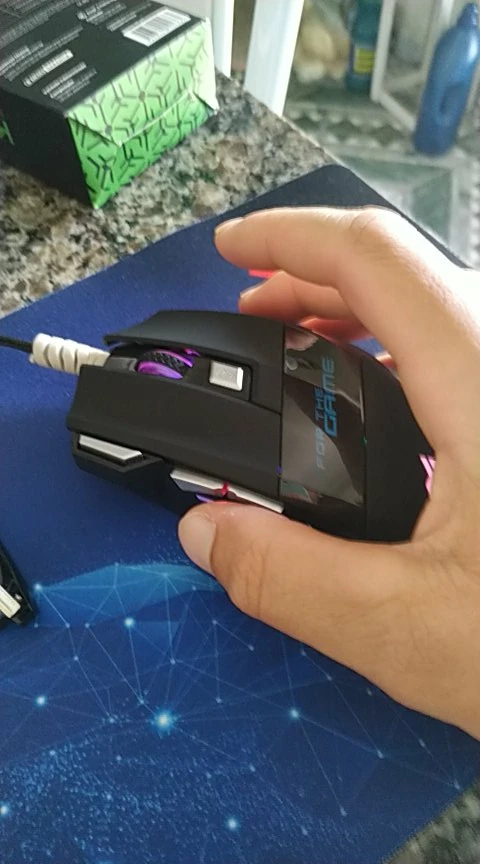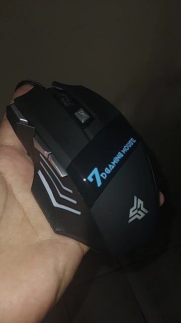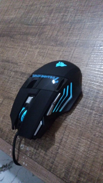 brilha legal, é bem leve, cabo melhorzinho do que os normais, tem os 7 botões(sendo os 3 normais de um mouse, 1 para ajustar o DPI e 3 botões adicionais na parte esquerda do mouse) e o mouse encaixa legal na mão.