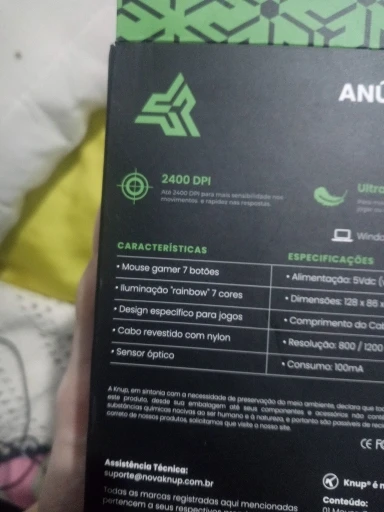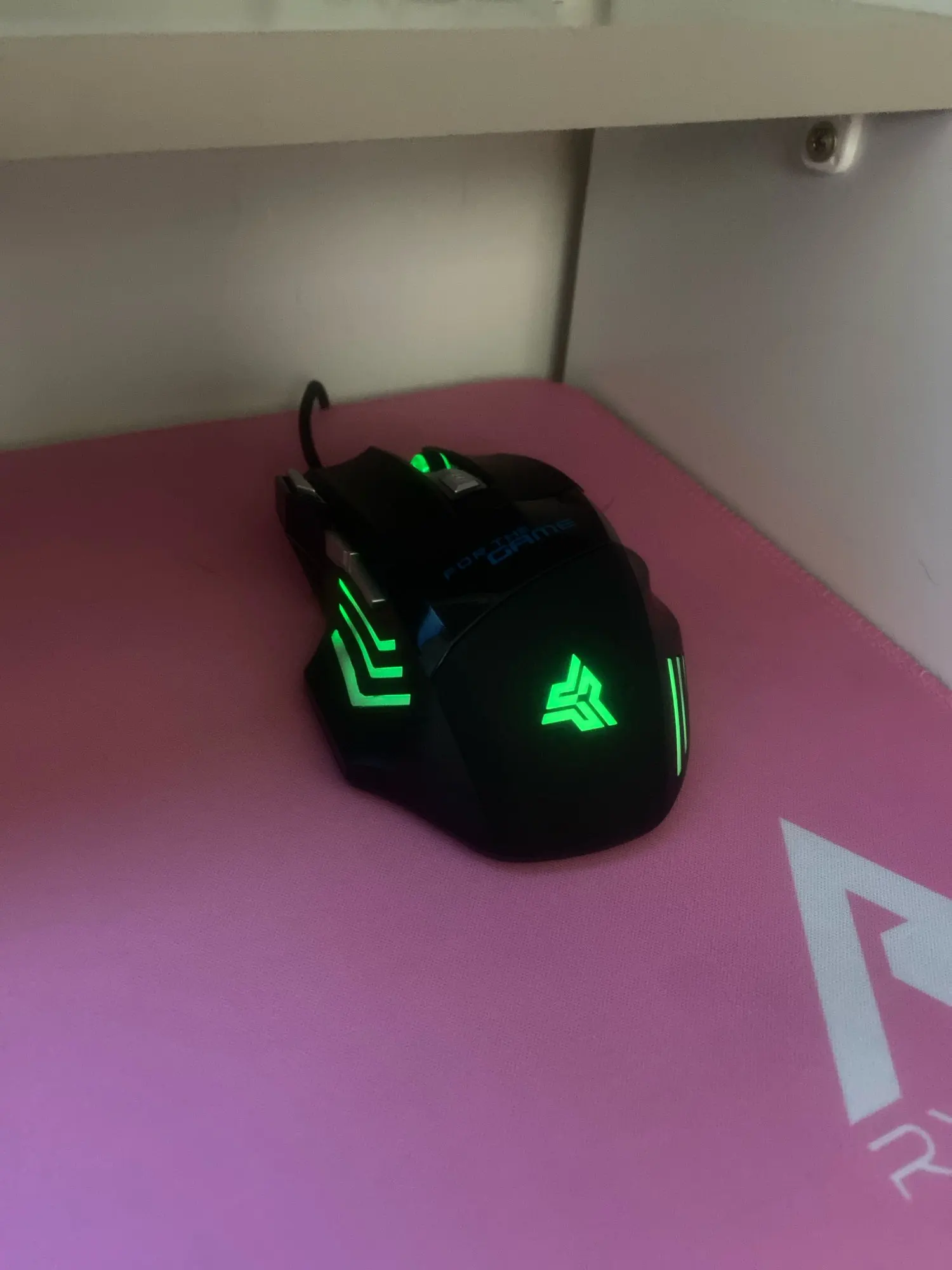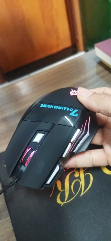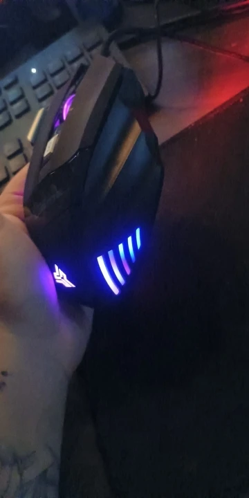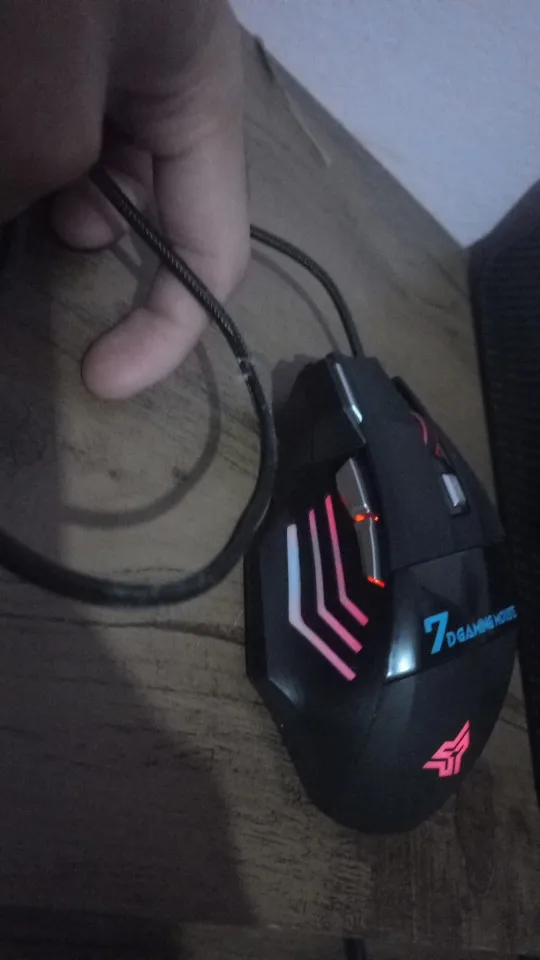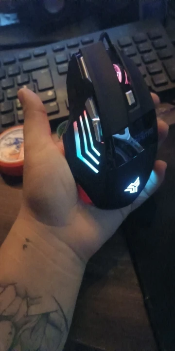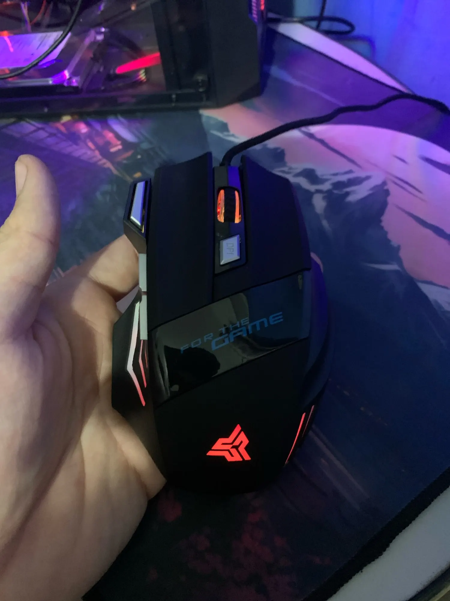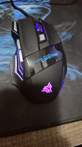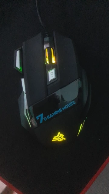 brilha legal, é bem leve, cabo melhorzinho do que os normais, tem os 7 botões(sendo os 3 normais de um mouse, 1 para ajustar o DPI e 3 botões adicionais na parte esquerda do mouse) e o mouse encaixa legal na mão.
