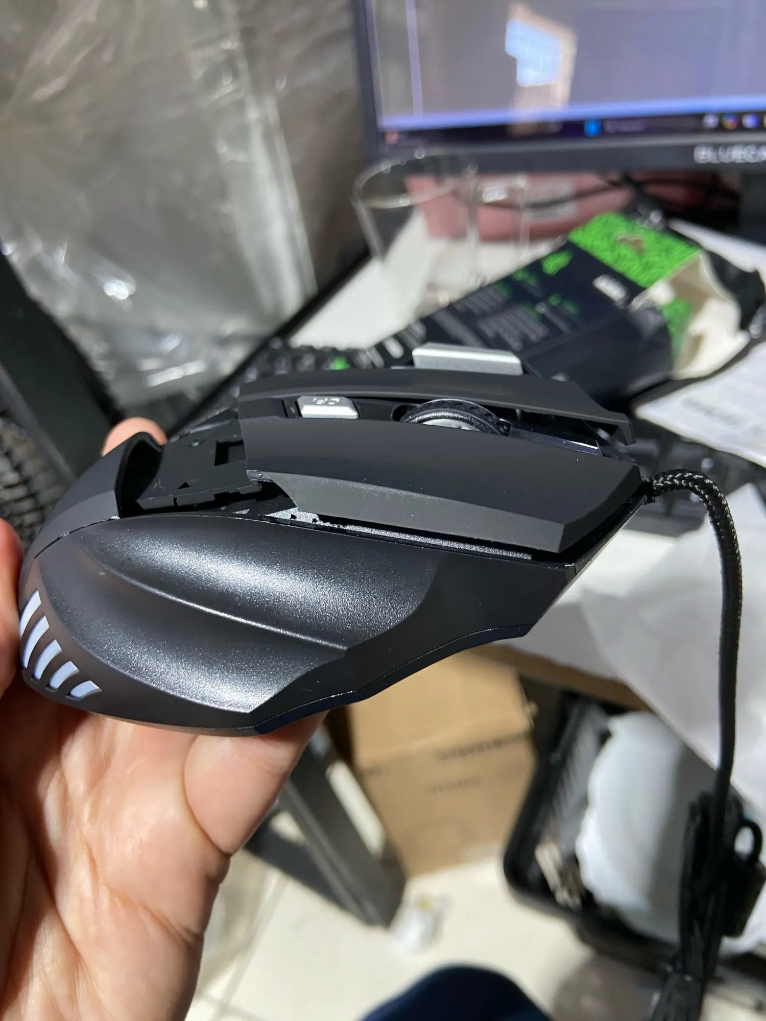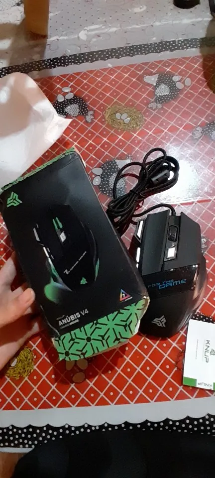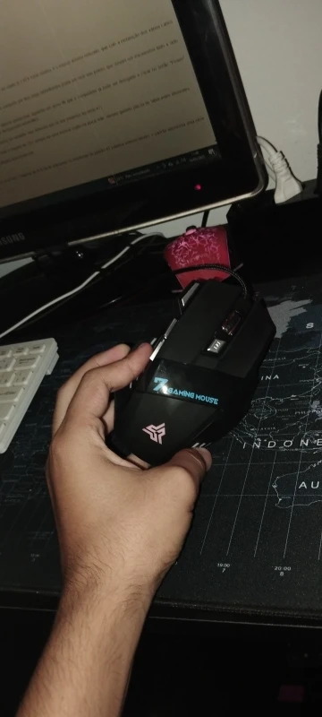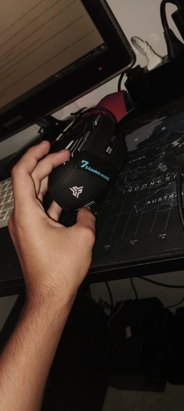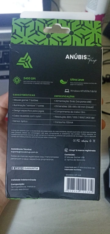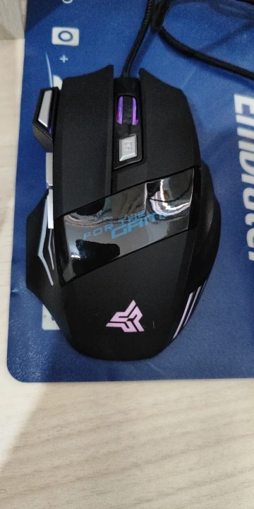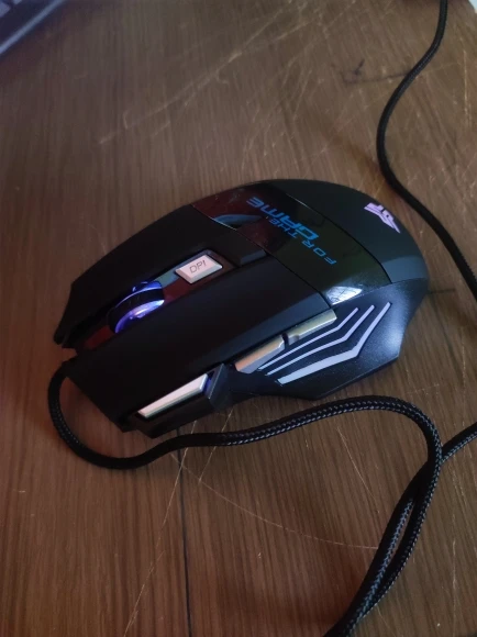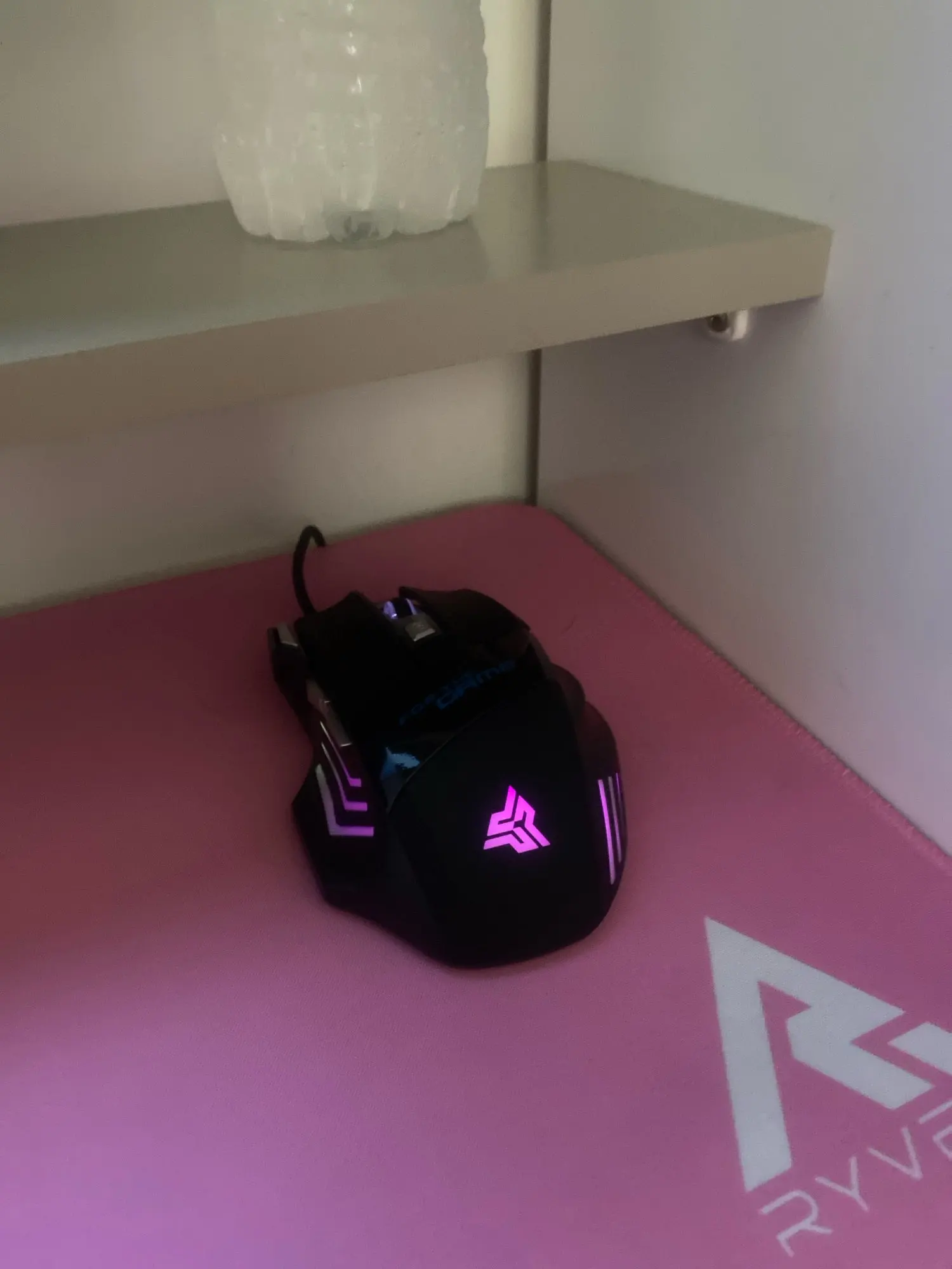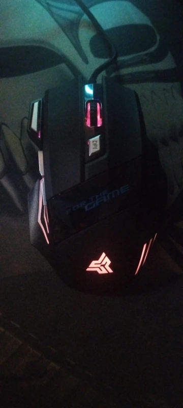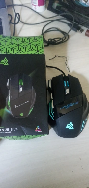 brilha legal, é bem leve, cabo melhorzinho do que os normais, tem os 7 botões(sendo os 3 normais de um mouse, 1 para ajustar o DPI e 3 botões adicionais na parte esquerda do mouse) e o mouse encaixa legal na mão.