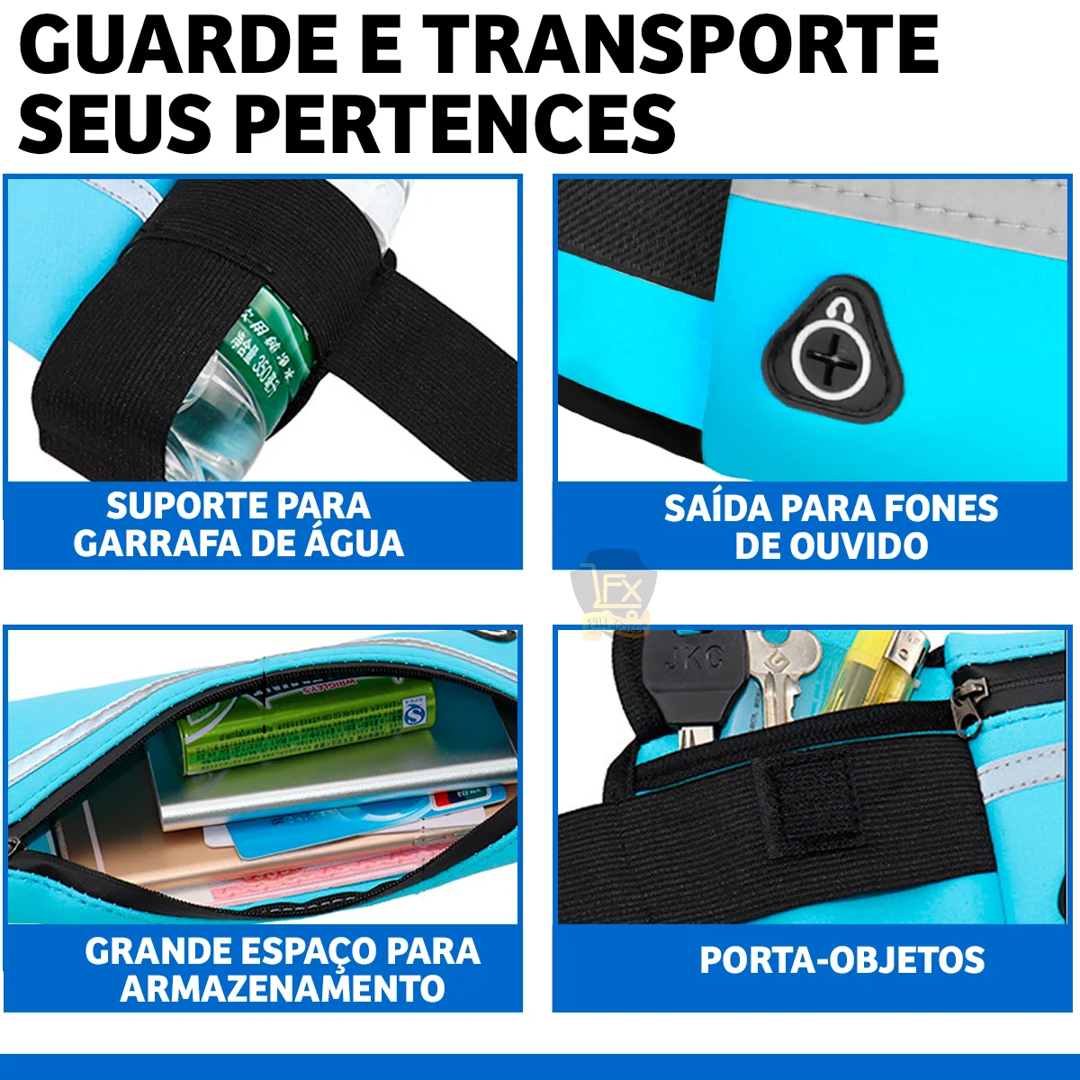 – Alça elástica ajustável, tanto para cinturas mais finas, até as mais grossas, deixando a pochete bem junto ao corpo, sem ficar balançando e incomodando os movimentos.