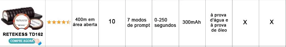 Capacidade da bateria da campainha | 300mAh | 300mAh | 300mAh | 280mAh | 400mAh | 500mAh |