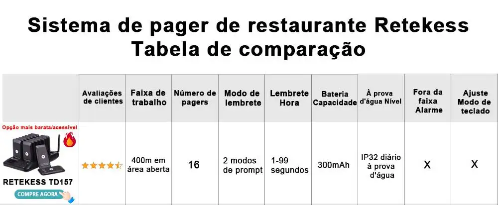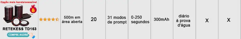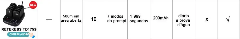 O pager de restaurante sem fio TD163 é feito de materiais duráveis e ecologicamente corretos, para que você não precise se preocupar com ele quebrar facilmente, e tem uma vida útil muito longa.