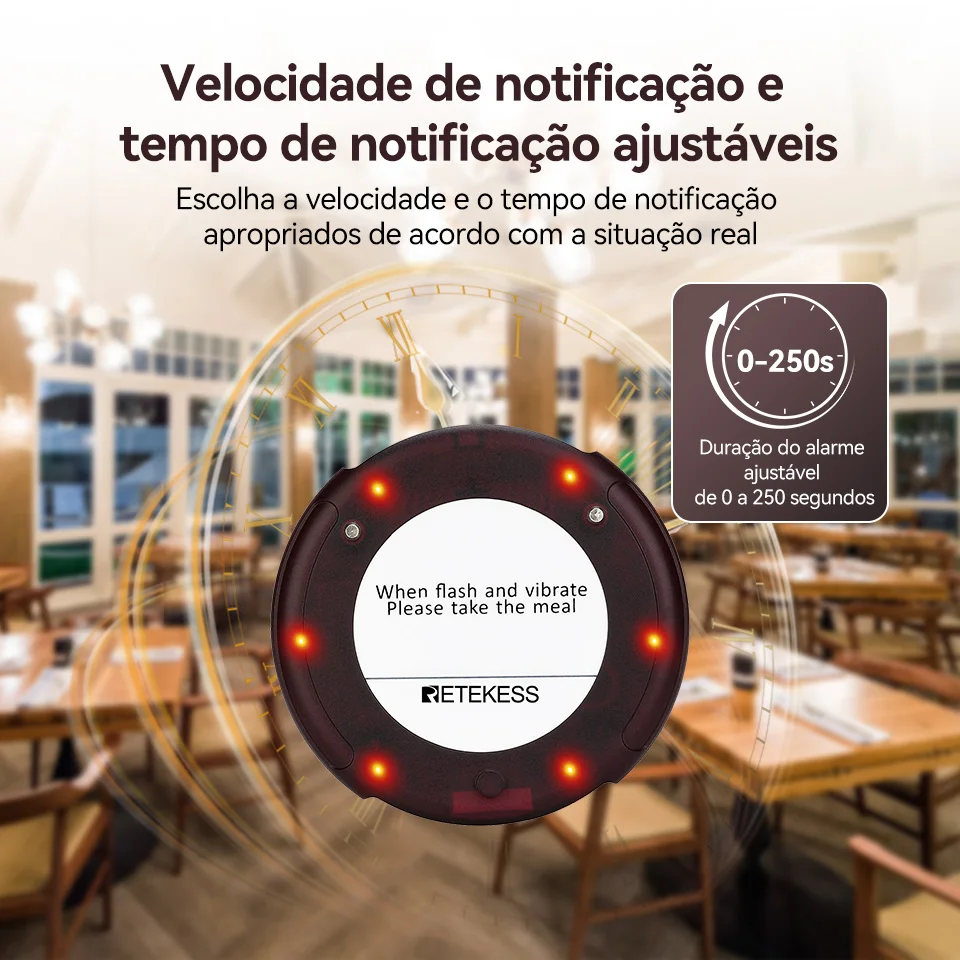 Você pode definir diferentes horários de lembrete entre 0 e 250 segundos, de acordo com diferentes situações, para evitar que os clientes esperem ansiosamente por excederem o horário de retirada da refeição. Ao mesmo tempo, você também pode definir a velocidade do lembrete rápido ou lento da placa para reduzir a irritabilidade causada pela audição prolongada.