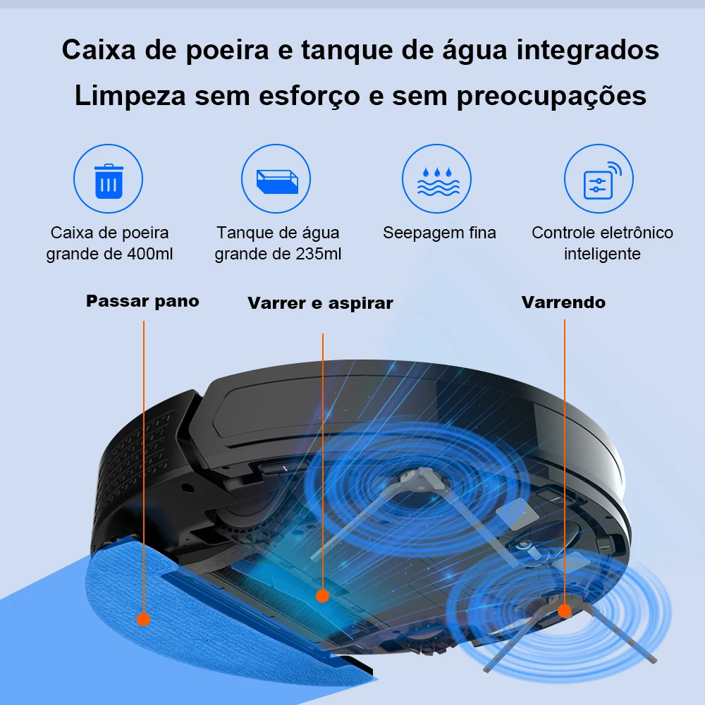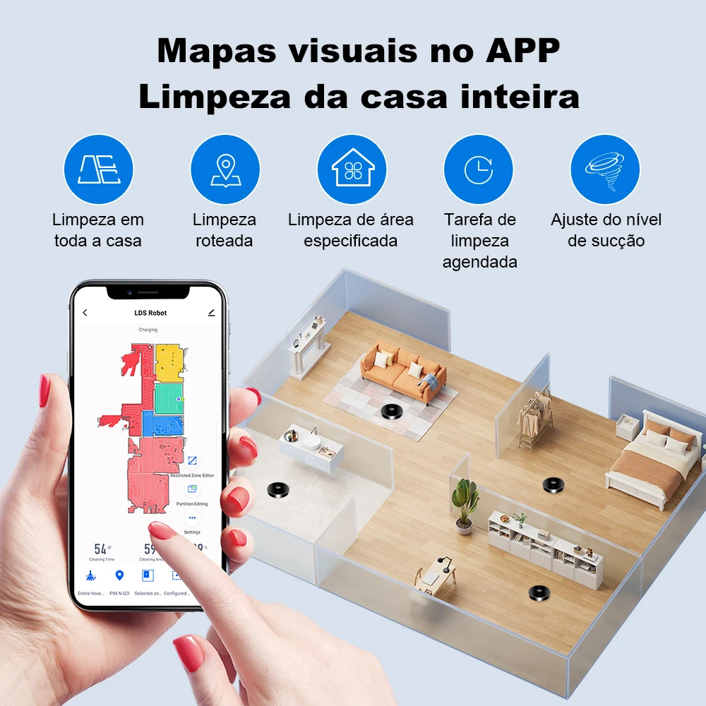 1. Lidar + Slam Dual Location – 5cm-8m Faixa de radar-Detecção de objetos em tempo real Scans e mapeia a sala, planeja e limpa metodicamente de acordo com o mapa.