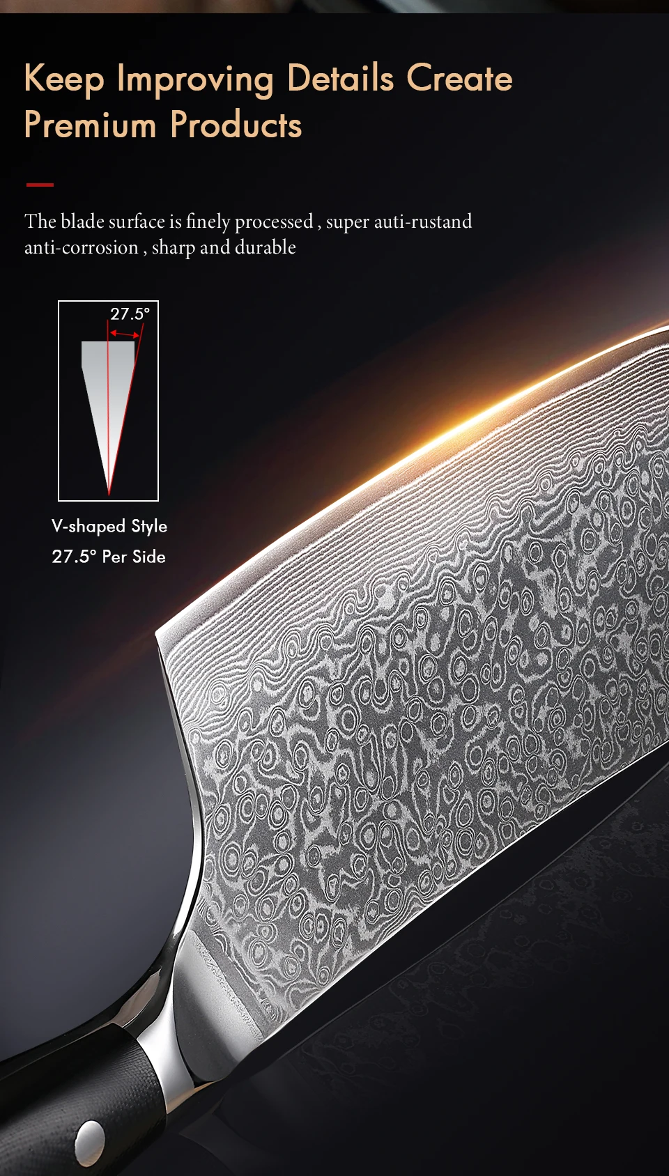 • Blade Material: 67 Layers Damascus Steel SKD11 Core