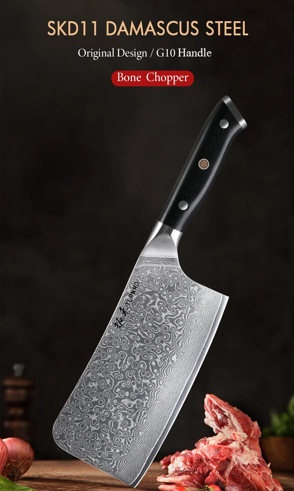 Turwho faca chopper de osso de 6,5 polegadas 67 camadas japonesas skd11 aço damasco faca de cozinha desossa faca de carne com cabo g10